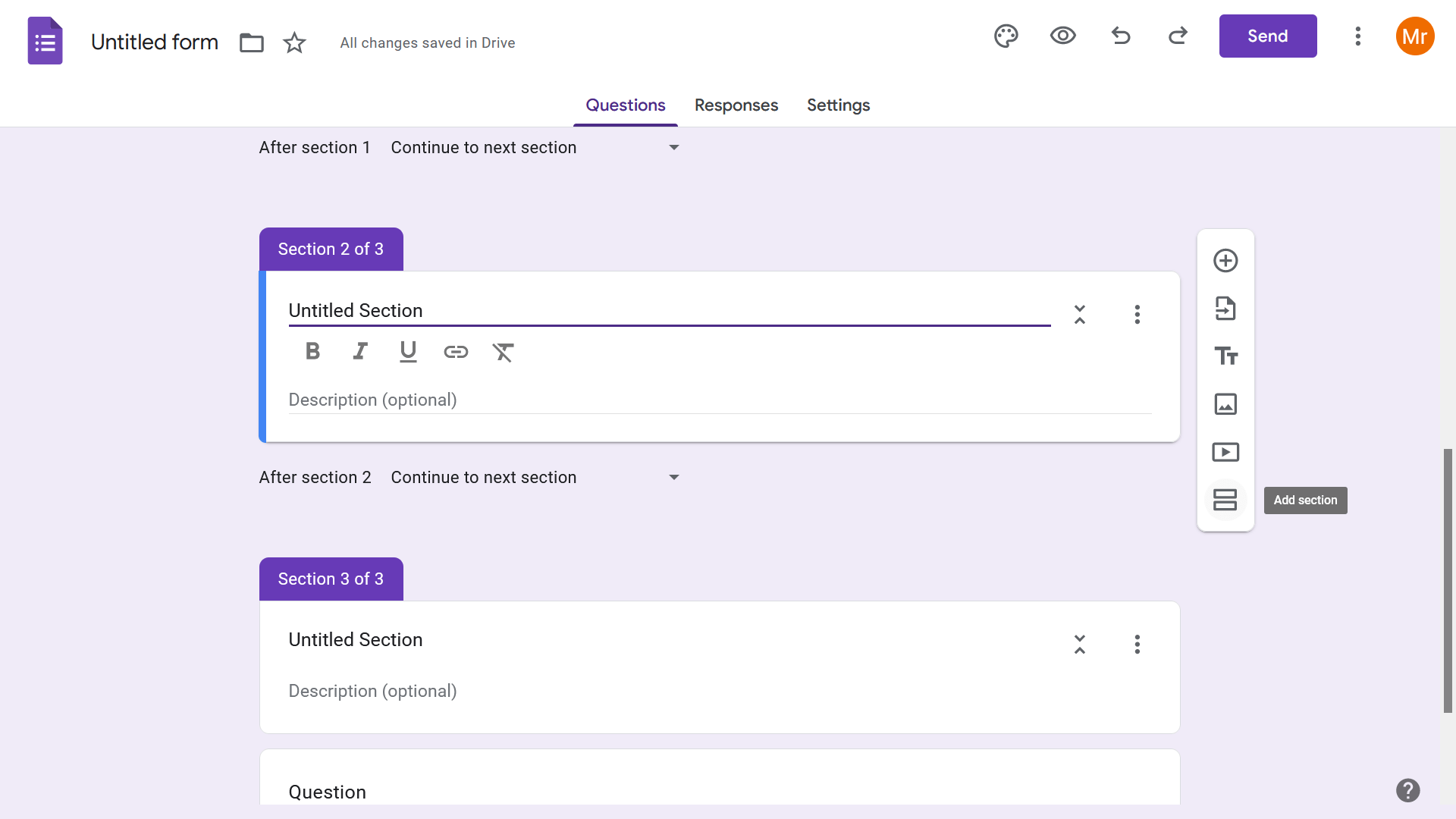 - সেকশন যুক্ত করার জন্য স্ক্রিনের ডান পাশের মেনুর শেষ অপশনটি অর্থাৎ Add Section এ ক্লিক করতে হবে।
