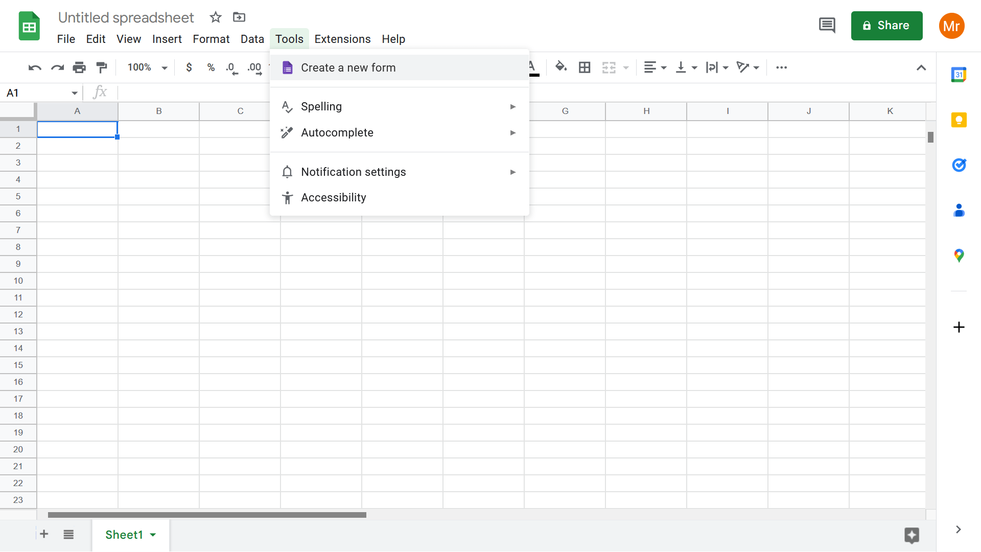 - তারপর, উপরের Tools বাটন থেকে Create a new Form অপশনটিতে ক্লিক করন।